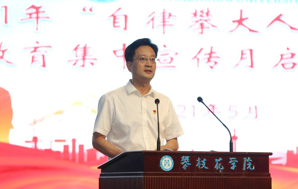5月19日下午,我校在会堂举行2021年“自律攀大人”学生劳动教育集中宣传月启动仪式。党委书记王斌出席并讲话,学生工作部、宣传部、教务处、后勤管理处、团委负责人,各二级学院分管学生工作领导、学生科科长、全体辅导员以及各班班长参加仪式。