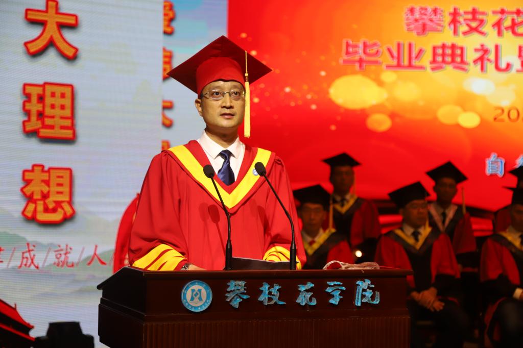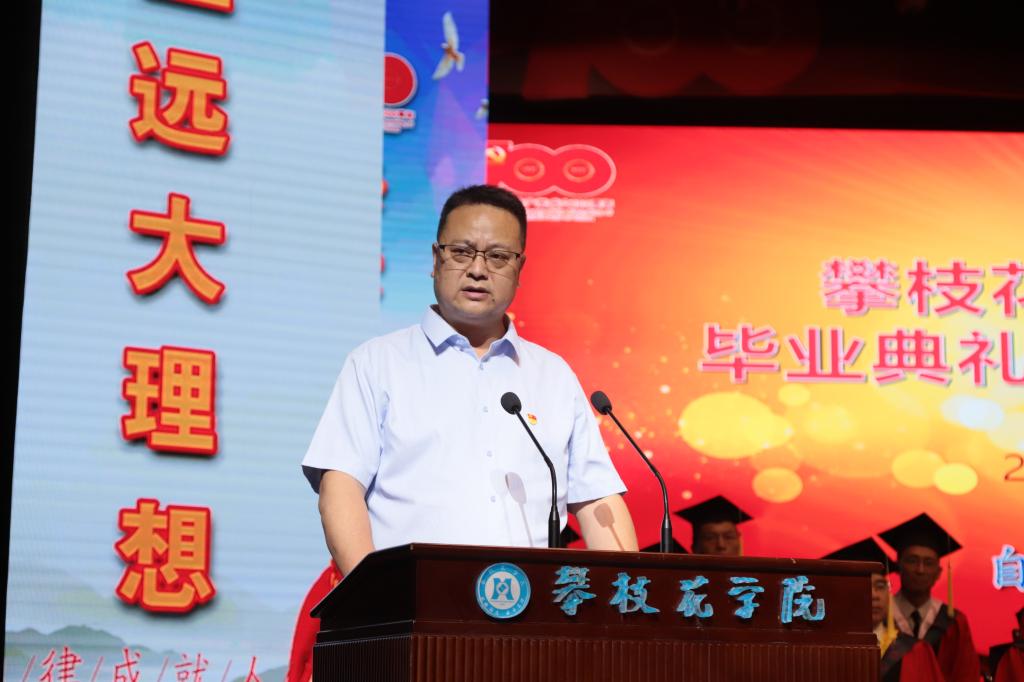 典礼上,党委副书记胥刚宣读《关于表彰四川省2021届优秀大学毕业生的决定》,副校长王兵宣读《攀枝花学院学位评定委员会关与2021届本科毕业生的授位决议》。