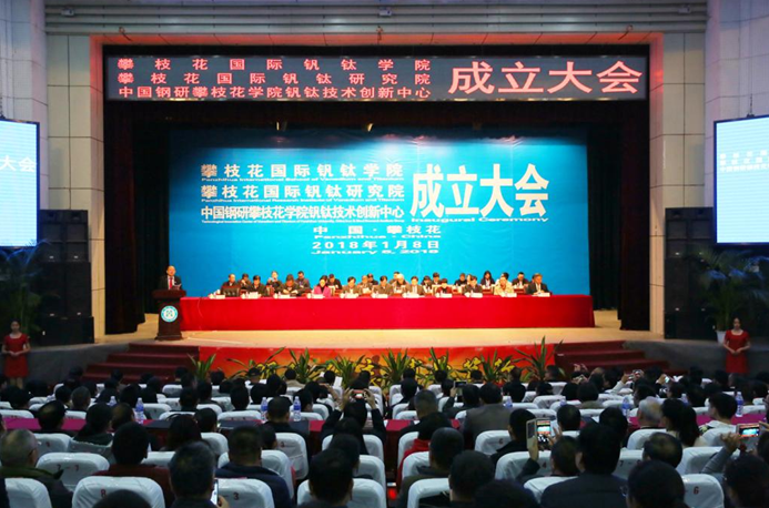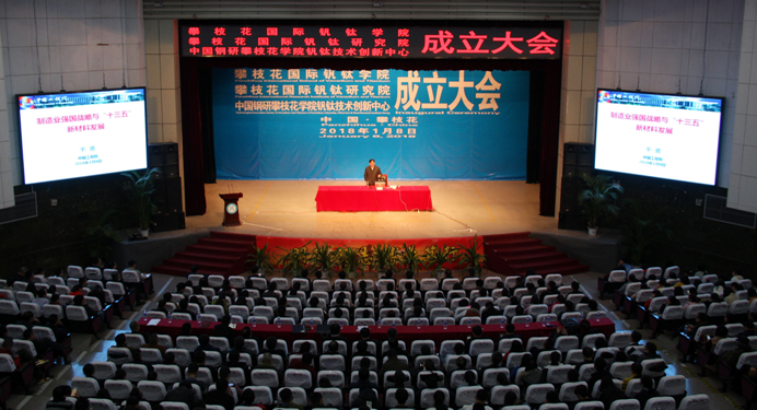 1月8日上午,由攀枝花市人民政府主导、我校举办、相关高校和科研院所参与、企业融入的攀枝花国际钒钛学院、攀枝花国际钒钛研究院、中国钢研攀枝花学院钒钛技术创新中心成立大会在我校会堂隆重举行。