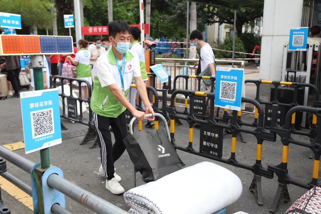 9月8日,学校南门外,艳阳高照,校旗迎风而展,攀大迎新工作开展如火如荼,各二级学院迎新工作有序进行中。作为新生集中返校期,截至晚上9点,新生报到人数3050人,占新生总人数73.16%。