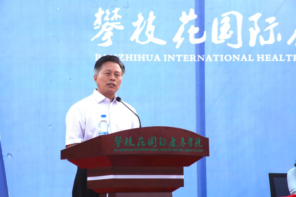 我校党委书记肖立军、东区区委书记罗军、攀枝花花舞人间公司董事长吴一和代表办学三方分别致辞。他们在致辞中表示,努力把攀枝花国际康养学院打造成培养康养人才的样板学院、标杆学院。
