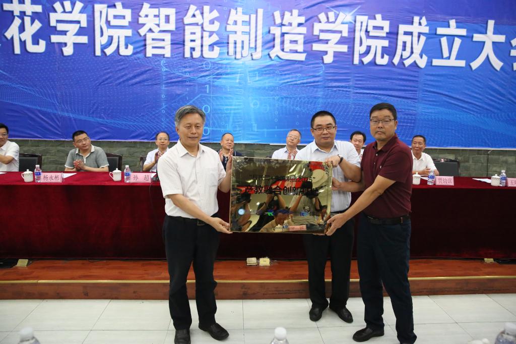 | 学校党委副书记、校长王曙光授“智能制造学院”牌 |