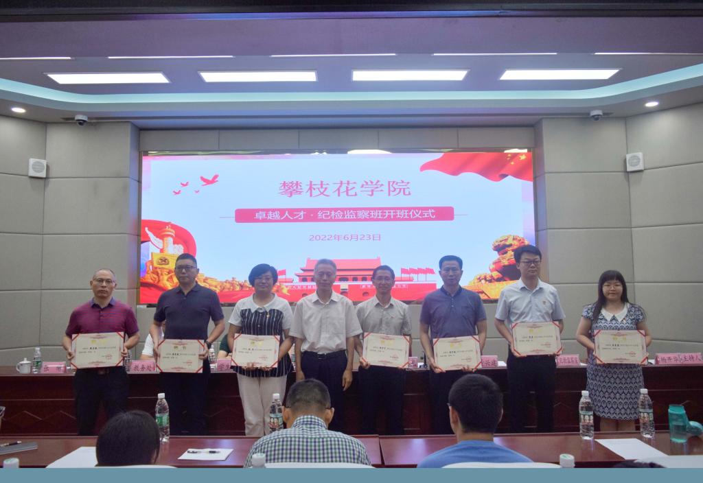 为有序推进我校纪检监察学科建设,探索培养既有法学、管理学专业知识,又有纪检监察实践能力的复合型人才培养模式和途径,培养从事或熟悉纪检监察工作,具有较强社会适应能力的高素质自律攀大人,6月23日下午,由法学院、纪检监察学院联合举办的“卓越人才•纪检监察方向课程研修班”正式开班,首届面向法学院2021级法学和行政管理专业选拔学员42名。校党委副书记、校长王曙光,省纪委监委驻校纪检监察组组长、校党委副书记、纪委书记彭徐出席并讲话,法学院、纪委机关、学工部、教务处相关负责人,法学全体教师、研修班授课导师代表150余人参加开班仪式。
