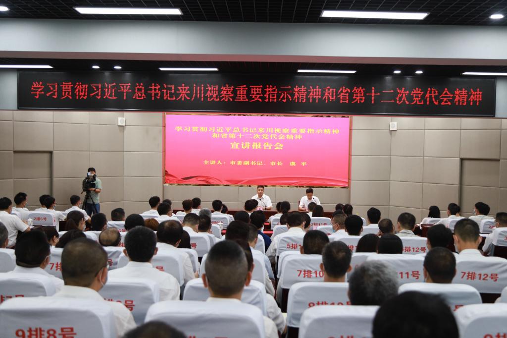 6月29日下午,市委副书记、市长虞平在我校宣讲习近平总书记来川视察重要指示精神和省第十二次党代会精神并作形势政策报告。校党委书记王斌主持报告会。党委副书记、校长王曙光出席报告会。