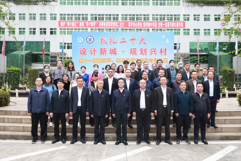 1016日上午,土建学院第十一届建筑学、城乡规划专业设计作品展在学校分析与测试中心广场举行。党委书记王斌,党委副书记、校长王曙光,党委副书记、纪委书记彭徐,副校长刘立新、朱波强、王兵,相关职能部门负责人及土建学院领导和建筑学、城乡规划专业学生近200余人参加开幕式并参观展览。