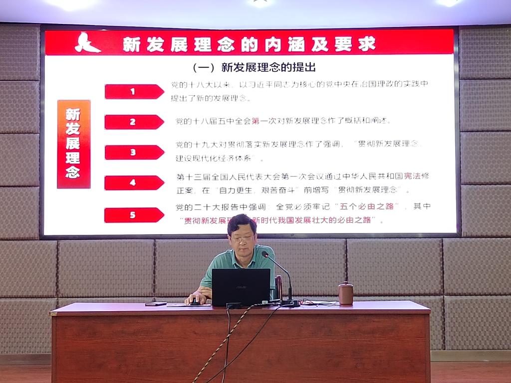 石维富通过解读新发展理念的内涵及要求,深入讲解新发展理念内涵“创新、协调、绿色、开放、共享”之间的相互关系,并指出科技创新是促进发展动力转换的根本动力。结合党的二十大报告和习近平总书记关于科技创新的重要论述,详细分析了我校有组织科研工作取得的成绩及目前存在的问题,希望广大教师围绕国家战略需求组织开展科学研究、人才培养和创新高地建设,推动高校科技创新更高质量发展。