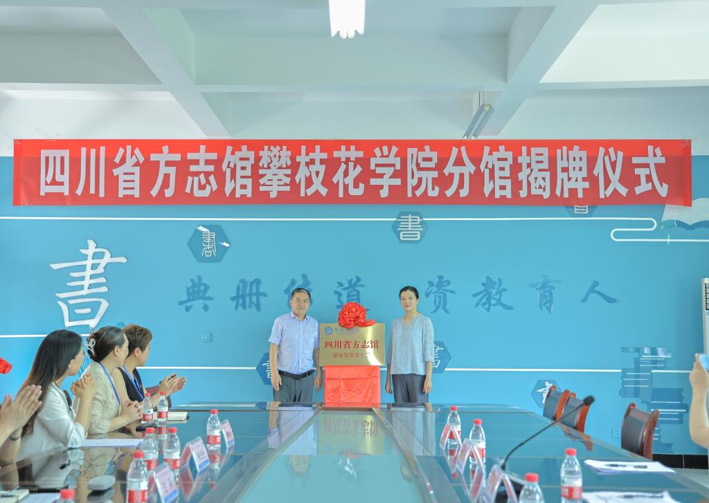 6月27日上午,四川省方志馆攀枝花学院分馆揭牌仪式在学校图书馆举行。四川省地方志工作办公室党组成员、机关党委书记邓瑜,攀枝花学院副校长王兵共同为分馆揭牌。四川省地方志办、攀枝花市地方志相关负责人,学校党委宣传部、图书馆、文学院相关负责人参加揭牌仪式。