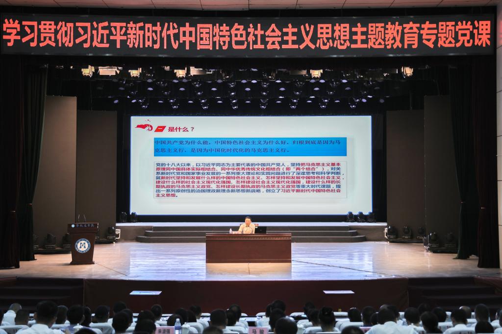 6月30日上午,党委书记胥刚以《坚决用当代中国马克思主义武装头脑,坚持用习近平总书记教育重要论述统一思想,在铸魂增智、正风促干中奋力推进应用型一流大学建设》为题,为全校党员干部教师讲授主题教育专题党课。第二十三巡回指导组副组长马骏、组员张鸿飞列席指导。在校校领导、科级及以上干部,博士、教授,相关职能部门和二级学院教工党员近400人参加专题党课学习。