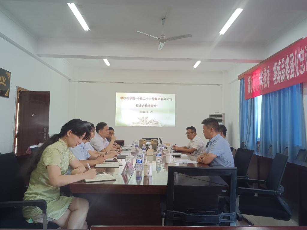 9月15日上午,中铁二十三局集团有限公司党委委员、党委干部部部长、人力资源部经理刘玉柱,中铁二十三局第三工程公司党委副书记、工会主席王力等一行6人来我校洽谈校企合作相关事宜。党委副书记、校长王曙光,招生就业处、产教融合发展部及土建学院相关负责人参加座谈交流。