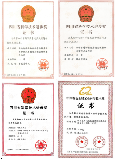联合国内外高校企业与领军科研团队,开展前沿科技攻关。开展钒钛磁铁矿非高炉冶炼关键核心技术攻关,节能环保,提高钒钛综合利用率。联合中国钢研科技集团有限公司、东北大学、重庆大学、北京科技大学等高校和企业,先后承担科技部十三五国家重点研发计划项目、四川省攀西试验区重大科技攻关项目、国家自然科学基金面上项目、四川省重大研发项目,研发成果在龙佰集团等上市公司进行了转化并建成中试线。开展电子束铁基镀钛膜技术攻关,提升钢材耐腐蚀性。联合上海大学开展电子束熔炼及镀膜领域关键核心技术科技攻关,与成都泰丰广华企业管理集团有限公司,签订了500万元“电子束铁基镀钛膜”横向科研课题。开展钛基复合材料耐高温特性关键技术攻关,增强材料耐高温性。联合哈尔滨工业大学陈玉勇教授团队承担了四川省重大科技攻关项目“纳米颗粒增强钛基复合材料耐高温(650-700℃)特性关键技术研究”,项目经费100万元,研制出综合性能满足新一代航空航天飞行器要求的原位自生(TiC+TiB)混杂增强高温钛基复合材料典型耐热构件。开展新型电子束熔炼工艺关键技术攻关,提升钛及钛合金纯度。联合宝武集团云钛有限公司进行电子束应用研发,“新型电子束冷床炉研制及其在钛及钛合金制备中的研究与应用”成果获中国有色金属学会科技进步二等奖,“大功EB炉装备国产化制造及难熔金属熔铸工艺开发”成果获四川省科技进步二等奖。开展钛基复合材料、钒钛基球形粉末等领域关键核心技术研发,制备高性能钒钛基新材料。联合西北有色金属研究院领军型专家队伍,在攀枝花学院建立“钛及其复合材料深加工与表面处理创新团队”,开展钛基复合材料、钒钛基球形粉末等领域关键核心技术研发与成果转化,获得攀枝花市政府2000万元经费支持。