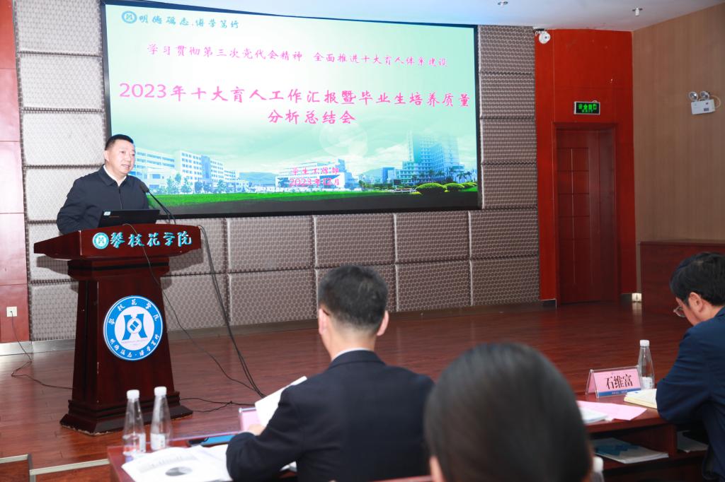 为学习贯彻学校第三次党代会精神,全面推进十大育人工作系建设,有针对性提升人才培养质量,12月12日下午学校在办公楼416会议室召开2023年十大育人工作汇报暨毕业生培养质量分析总结会。党委书记胥刚、副校长石维富,十大育人工作牵头单位负责人相关职能部门负责人,各二级学院院长、分管学生工作领导参加会议。