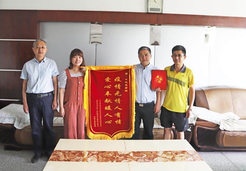 518日下午,东华街道便民服务中心主任李前红、学园路社区第一书记严波代表中共攀枝花市东区东华街道工作委员会、攀枝花市东区人民政府东华街道办事处到校赠送锦旗,对学校大力支持街道、社区抗击新冠疫情,师生积极参与志愿服务表示感谢。副校长王兵代表学校接收锦旗,对街道、社区给予学校抗疫工作的支持表示感谢,并希望街道、社区同学校继续相互支持做好防控工作。