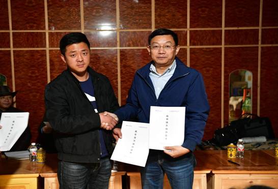 签订《攀枝花学院帮扶热郎宫村发展藏香猪养殖资金支持协议》