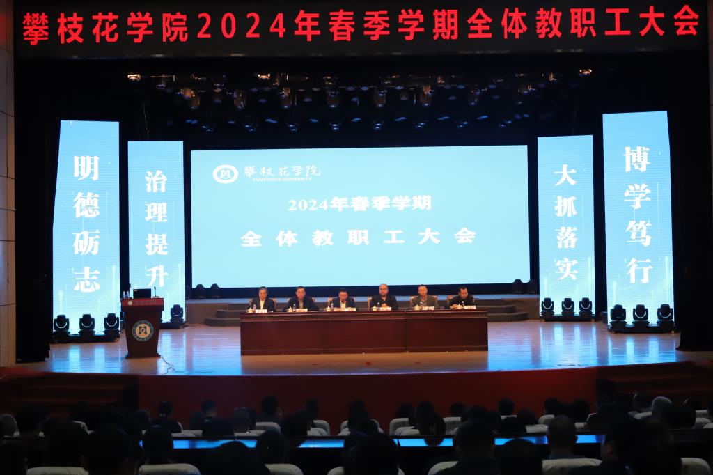 胥刚强调,2024年是攀大的“治理提升年”“大抓落实年”,也是全面贯彻落实第三次党代会精神的开局之年,要深刻认识学校治理体系和治理能力目前存在的问题,善学善思善为全面提升应用型一流大学的治理能力,立说立行紧抓快办全面落实学校发展各项工作任务。他指出,全校上下要团结奋进,全面贯彻落实学校第三次党代会精神,进一步把思想、认识、行动统一到“办好人民满意的教育”和“建设应用型一流大学”的双重使命任务上来,通过不断加强治理能力建设,提升学校核心竞争力,以更加强烈的落实意识、更加过硬的落实举措、更加务实的落实作风,锚定新目标,加快建设阳光健康美丽的应用型一流大学,奋力谱写中国式现代化最美攀大篇章,为全面推进教育强国、科技强国、人才强国建设和民族复兴伟业作出新的更大贡献!