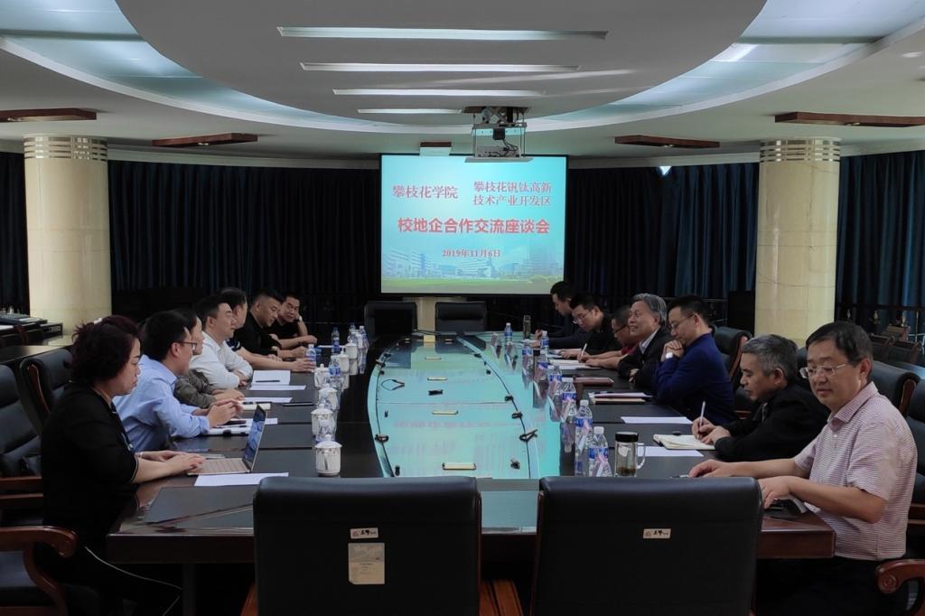 11月6日下午,我校在办公楼三楼会议室与攀枝花市钒钛高新技术产业园区召开校地企合作交流座谈会。市委副秘书长、钒钛高新区党工委常务副书记王雪松,高新区管委会副主任张瑞莉,我校党委副书记、校长王曙光参加座谈会。副校长何永斌主持会议。