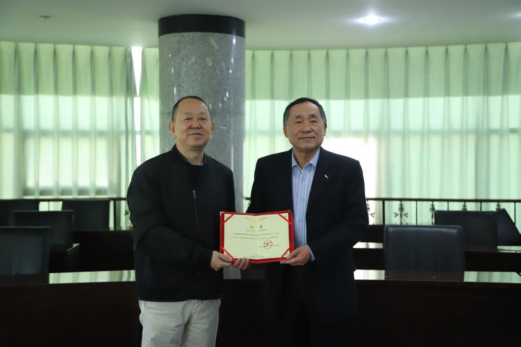 党委书记肖立军为高唯院士(右)颁发聘书