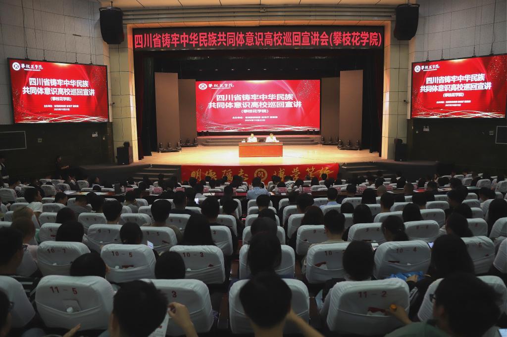10月22日下午,由四川省民族宗教委、四川省教育厅、共青团四川省委主办的四川省铸牢中华民族共同体意识高校巡回宣讲在我校阳光会堂举行。四川省铸牢中华民族共同体意识高校巡回讲堂三年行动宣讲团成员、四川省民族研究所副所长陈东研究员作宣讲。校党委副书记刘立新主持并作总结讲话。
