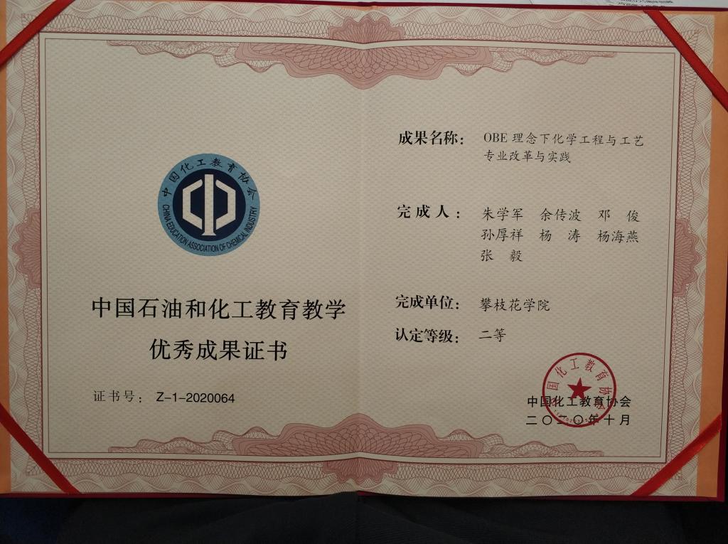 【攀大教师】我校朱学军教授荣获第五届中国石油和化工教育教学成果二等奖