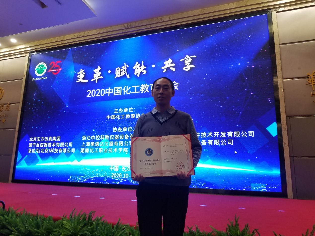 1030日,中国化工教育协会主办的2020中国化工教育年会(EduChem2020)在湖南省长沙市召开,现场颁发了第五届中国石油和化工教育教学优秀成果奖,我校生化学院朱学军教授主持的《OBE理念下化学工程与工艺专业改革与实践》荣获二等奖。