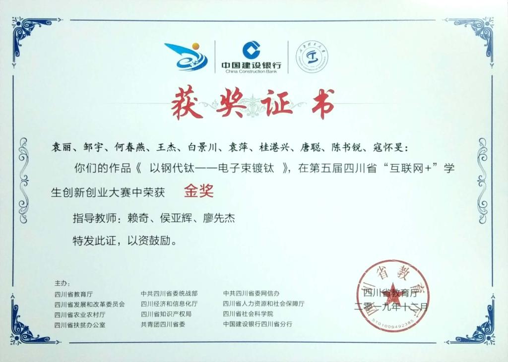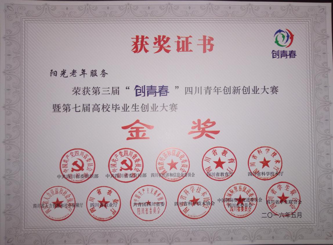 我校第三届“创青春”四川青年创新创业大赛获奖证书