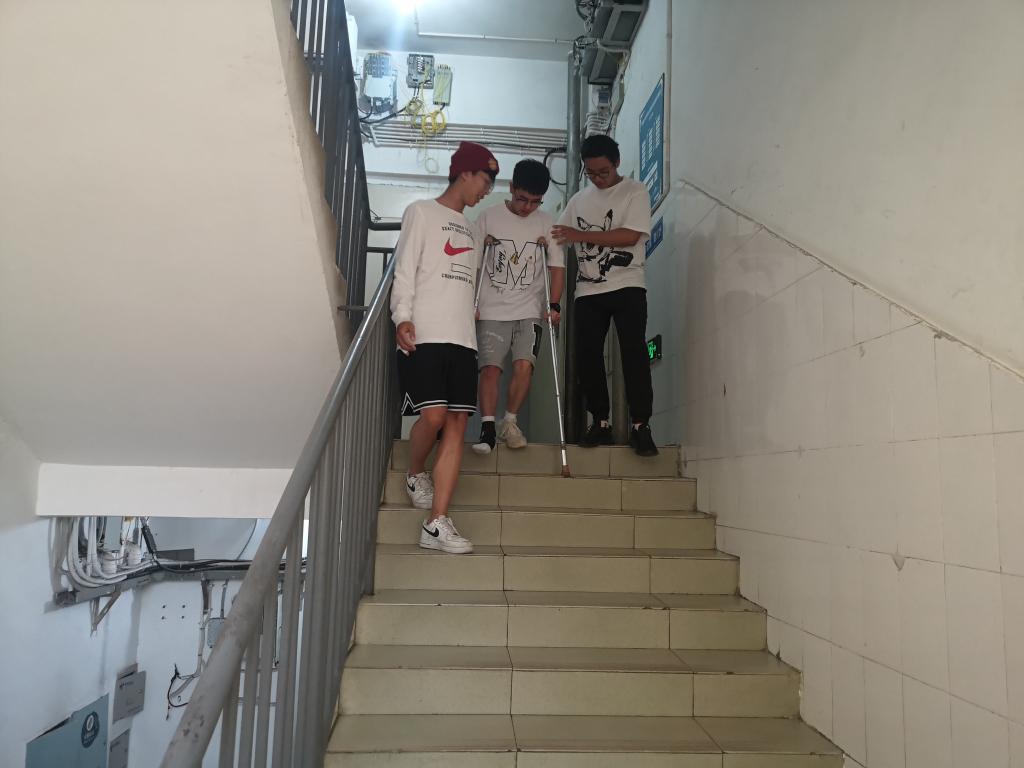 30秒后,教师、志愿者、公寓管理员组织学生根据各公寓楼栋平层学生先疏散、平层以上楼层的学生在教师、志愿者指挥下,依次间隔一分钟疏散的要求,按应急路线有序疏散到指定区域。