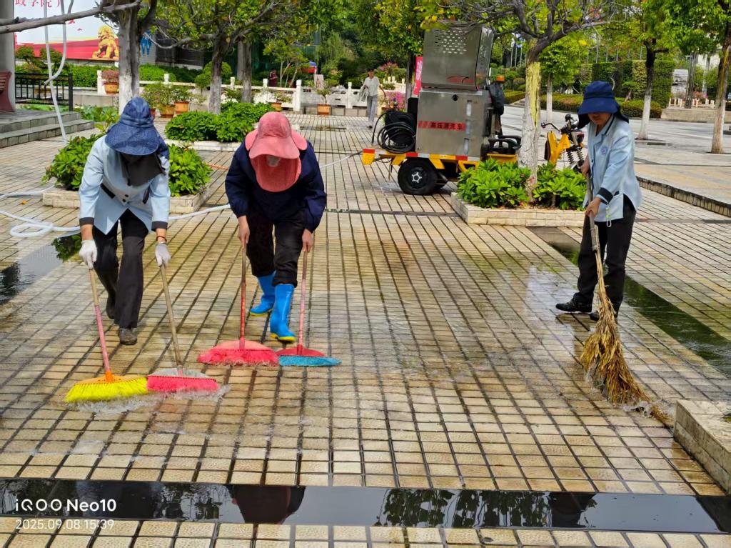 为以全新面貌迎接新生,资产公司提前谋划、周密安排,全面推进校园环境提质升级。环卫队伍对主要路面进行彻底冲洗,对喷水池等景观设施进行清洗换水,增加卫生保洁频次,并对重点区域及卫生死角实施强化清理,确保校园环境整洁优美。绿化团队精心开展绿化养护,通过优化景观布置,以盎然绿意和缤纷花卉营造喜庆热烈的迎新氛围。