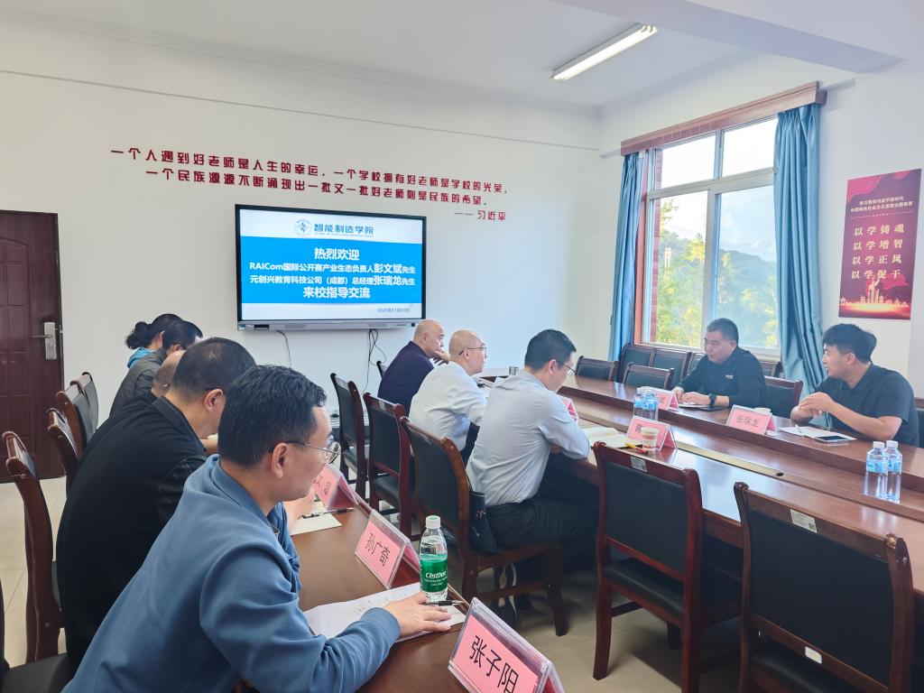 1110日,智能制造学院在学院第二会议室召开“以赛促教”专题研讨会。RAICom国际公开赛产业生态负责人彭文斌先生、元创兴教育科技公司(成都)总经理张瑞龙先生受邀来校作交流指导。学院副院长(主持工作)魏弦、教务处副处长陈尧、学院副院长周振出席会议,学院实践中心、教学科、教研室主任相关负责人参加会议。