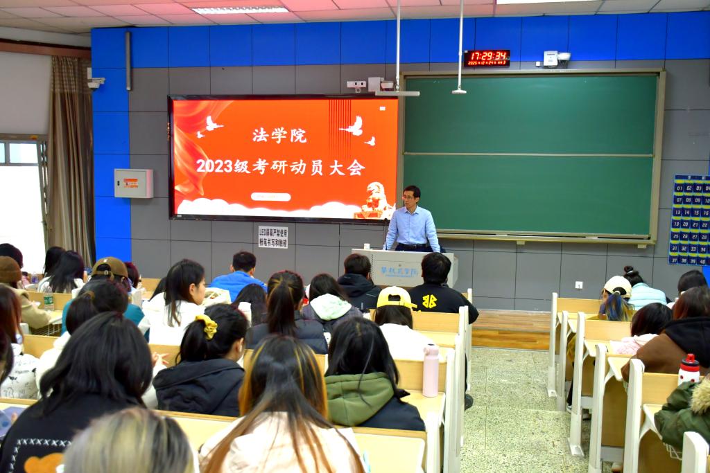 为扎实做好考研指导服务,助力法学学子明确备考方向、增强升学信心。1224日下午,法学院于志学楼201教室召开2027届学生考研动员大会。学院院长杨开华、党委书记张琳、2023级辅导员王霞出席,2023级全体学生参会。